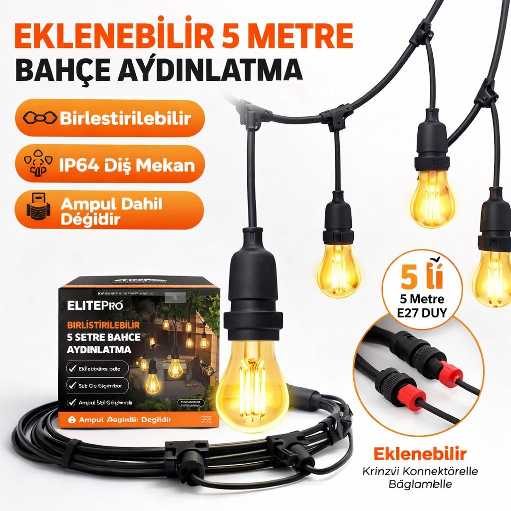 Ürün eklenebilir yapıya sahiptir. Birden fazla set birbirine bağlanarak daha uzun aydınlatma hatları oluşturulabilir. Böylece geniş alanların dekoratif aydınlatması kolaylıkla yapılabilir. E27 duy yapısı sayesinde LED filament ampuller, dekoratif rustik ampuller veya standart LED ampuller ile kullanılabilir.